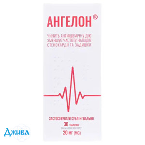 При гострих серцевих станах (напад стенокардії, аритмія) таблетки АНГЕЛОН® приймати по 10*-80 мг до покращення стану. Максимальна добова доза - 160 мг.