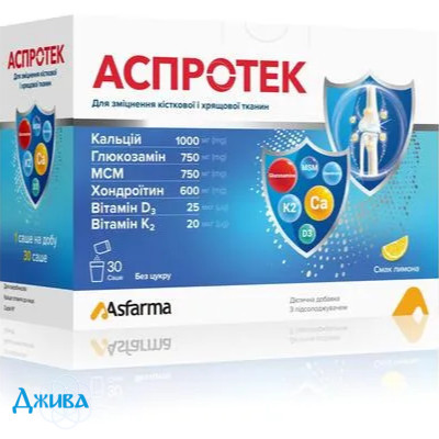 АСПРОТЕК - стимулятор регенерації кісткової та хрящової тканин. Біологічна цінність визначається властивостями складових компонентів.