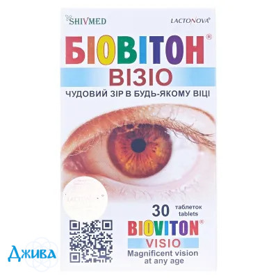 Біовітон Візіо - оригінальна комбінована формула, яка сприяє нормальному функціонуванню зорового апарату, запобігає розвитку дегенерації сітківки, глаукоми, уповільнює розвиток катаракти і зниження гостроти зору, пов'язаних з віковими змінами.