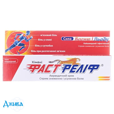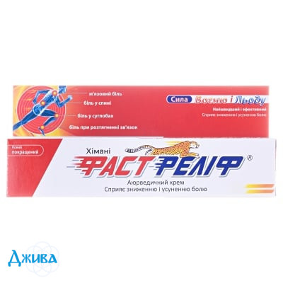 Мазь ФАСТ РЕЛІФ показана при невралгії, міалгії, артралгії, ішіасі, люмбаго. Завдяки вмісту ментолу, камфори, ефірних масел евкаліпта, тарпіна, гвоздики, а також метилсалицилату і тимолу препарат ефективно усуває біль, усуває свербіж, має протизапальний ефект, надає зігріваючу дію. Втирання мазі в шкіру викликає розширення поверхневих судин, відчуття теплоти і поліпшення кровообігу в шкірі і підшкірній жировій клітковині.