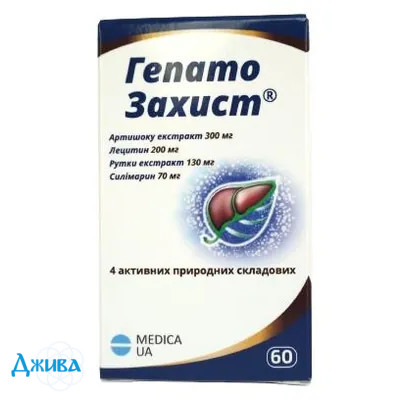 Комплексна дія компонентів ГепатоЗахист® заснована на помірній жовчогінній, потужній гепатопротекторній, значній мембраностабілізуючій, м'якій діуретичній та вираженій антиоксидантній дії на організм. ГепатоЗахист® - це додаткове джерело флавоноїдів, фосфоліпідів та органічних кислот, що сприяє нормалізації функціонування ШКТ, здійснює комплексну детоксикаційну дію на організм у цілому.