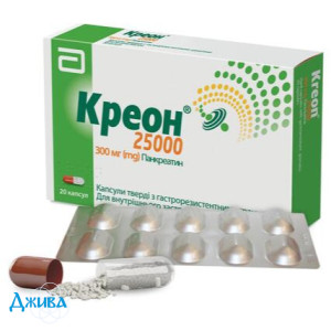 Креон 25 000 (Kreon), капс. с гастрорезист. гран 300 мг, №20
