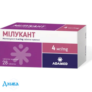 (4 мг) на добу, ввечері. Мілукант слід приймати за 1 годину до їди або через 2 години після їди. Немає необхідності в корекції дози для цієї вікової групи. Препарат Мілукант у лікарський формі таблетки жувальні (4 мг) не рекомендований для дітей віком до 2 років.