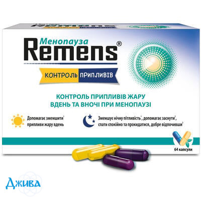 Ременс® контроль припливів - інноваційний засіб саме проти припливів вдень і вночі. Це спеціально розроблена комбінація природних екстрактів, вітамінів і мінералів для полегшення дискомфорту під час менопаузи. Усі природні екстракти, що входять до складу Ременс® контроль припливів, добре переносяться і придатні для тривалого вживання.