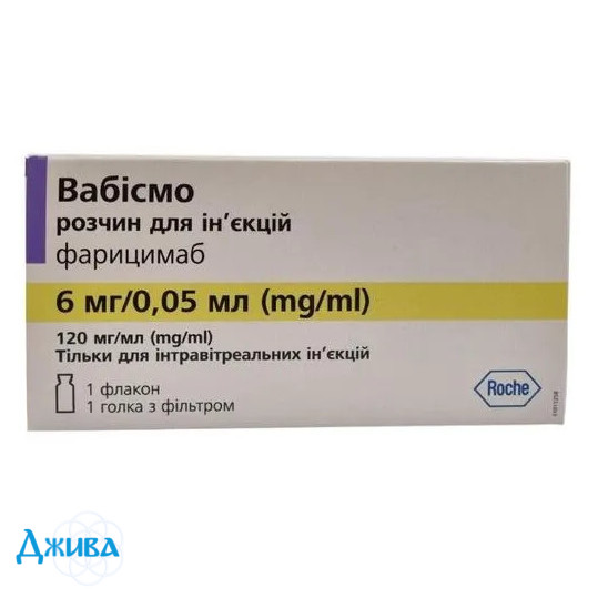 Подібне при застосуванні афліберсепту зменшення середньої товщини центру фовеолярної зони (товщина центрального підполя, CST) спостерігалося, починаючи з вихідного рівня по 48 тиждень під час застосування препарату Вабісмо. Середнє зменшення CST від вихідного рівня до візитів для оцінки первинної кінцевої точки (усереднено на 40, 44 і 48 тижнях) становило -137 мкм і -137 мкм для препарату Вабісмо з інтервалом введення 8 тижнів (кожні 8 тижнів), 12 тижнів (кожні 12 тижнів) або 16 тижнів (кожні 16 тижнів) порівняно із -129 мкм і -131 мкм при застосуванні афліберсепту в дослідженнях TENAYA і LUCERNE відповідно. Tаке середнє зменшення CST підтримувалось впродовж року 2. Спостерігався порівнянний ефект препаратів Вабісмо і афліберсепту щодо зменшення інтраретинальної рідини (IRF), субретинальної рідини (SRF) і відшарування пігментного епітелію (ВПЕ). Під час візитів для оцінки первинної кінцевої точки в дослідженнях TENAYA і LUCERNE частка пацієнтів із відсутністю IRF становила відповідно 76-82 % і 78-85 % при лікуванні препаратом Вабісмо порівняно з 74-85 % та 78-84 % при лікуванні афліберсептом. Відсоток пацієнтів із відсутністю SRF у двох дослідженнях становив 70-79 % і 66-78 % при лікуванні препаратом Вабісмо порівняно з 66-78 % і 62-76 % при лікуванні афліберсептом. Відсоток пацієнтів із відсутністю ВПЕ у двох дослідженнях становив 3-8 % і 3-6 % при лікуванні препаратом Вабісмо порівняно з 8-10 % та 7-9 % при лікуванні афліберсептом. Таке зменшення IRF, SRF і ВПЕ підтримувалось впродовж року 2 (тижні 104-108).