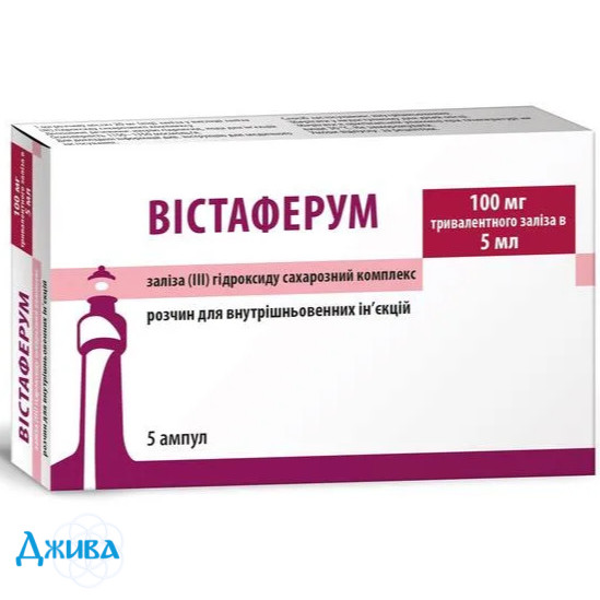 ВІСТАФЕРУМ показаний пацієнтам, яким не можуть бути призначені пероральні препарати заліза у зв'язку з їх непереносимістю, неефективністю або наявністю захворювань шлунково-кишкового тракту. Не слід одночасно застосовувати ВІСТАФЕРУМ із залізовмісними пероральними засобами, оскільки абсорбція заліза, застосовуваного всередину, знижується. Тому пероральне лікування препаратами заліза потрібно починати не раніше ніж через 5 днів після останньої ін'єкції препарату.