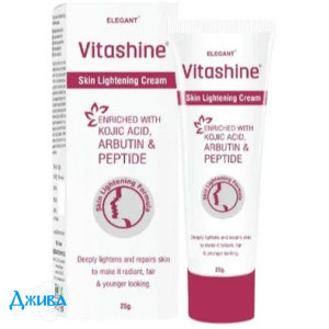 Крем VITASHINE Max покращує зовнішній вигляд шкіри, зменшуючи дрібні зморшки, жорсткість і поліпшує колір шкіри. Засіб подвійної дії для гіперпігментації, що допомагає зменшити рубці, плями, пошкодження шрамів, розтягування рубців, темних кіл під очима та опіків. Підходить для всіх типів шкіри.