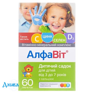 Може бути використана додатково до різноманітного та збалансованого раціону харчування дітей від 3 до 7 років як додаткове джерело вітамінів мікроелементів, магнію та бета-каротину з метою підтримки нормального функціонування імунної системи, адаптації до підвищених розумових, фізичних та емоційних навантажень. Добова доза вітамінів та мінералів розділена на три таблетки, з урахуванням сумісності компонентів. Властивості Алфавіт Дитячий садок підтверджено науковими дослідженнями складу. Сировина та готовий продукт проходять суворий контроль якості.