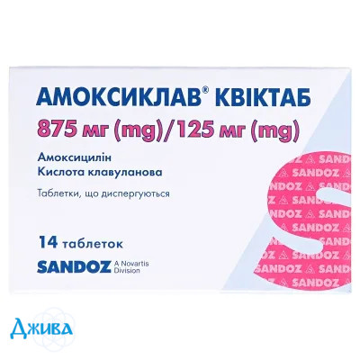 Амоксиклав квіктаб, таблетки, дисперг., по 875 мг/125 мг, №14