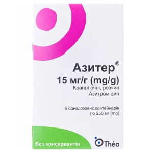 Азитер, краплі оч., р-н 15 мг/г (250 мг) у конт. однодоз. у саше, №6