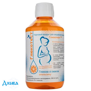 Глюкотест, готовий розчин для перорального застосування зі смаком апельсина по 300 мл у флак.