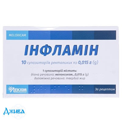 Селективність інгібування ЦОГ-2 мелоксикамом підтверджена багатьма дослідниками як in vitro, так і ex vivo. Інфламін (15 мг) переважно інгібує ЦОГ-2 ex vivo, що підтверджується більшим інгібуванням продукції PGE2 у відповідь на стимуляцію ліпополісахаридом порівняно з продукцією тромбоксану у згорнутій крові (ЦОГ-1). Ці ефекти - дозозалежні. Інфламін не впливає на агрегацію тромбоцитів або на час кровотечі при застосуванні рекомендованих доз ex vivo, тоді як індометацин, диклофенак, ібупрофен і напроксен значно інгібують агрегацію тромбоцитів і подовжують кровотечу.