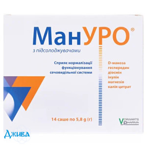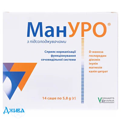 D-маноза - рослинний моносахарид з природними антибактеріальними властивостями. D-маноза повільно метаболізується в організмі і попадає в незміненому вигляді в сечовий міхур. У сечовому міхурі D-маноза покриває слизову оболонку тонким шаром і тим самим перешкоджає прикріпленню бактерій Esherichia coli до стінок сечового міхура та сприяє виведенню бактерій з сечею.