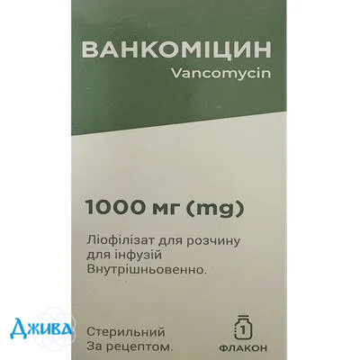 Ванкоміцин, ліофілізат для р-ну д/інф. по 1000 мг у флак.